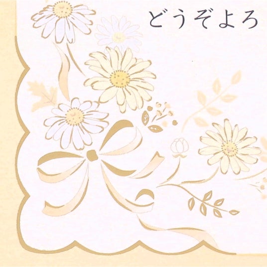 リボンや花のモチーフが可愛らしい印象を与えるデザイン。あたたかみあるクリーム色を基調とし、優しい雰囲気を演出してくれます。さりげなく施された金箔加工が品格を添えます。