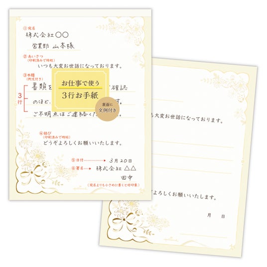 • 手間いらず: 便箋・一筆箋の中面には、ビジネスでよく使われる定型文がすでに印刷されています。