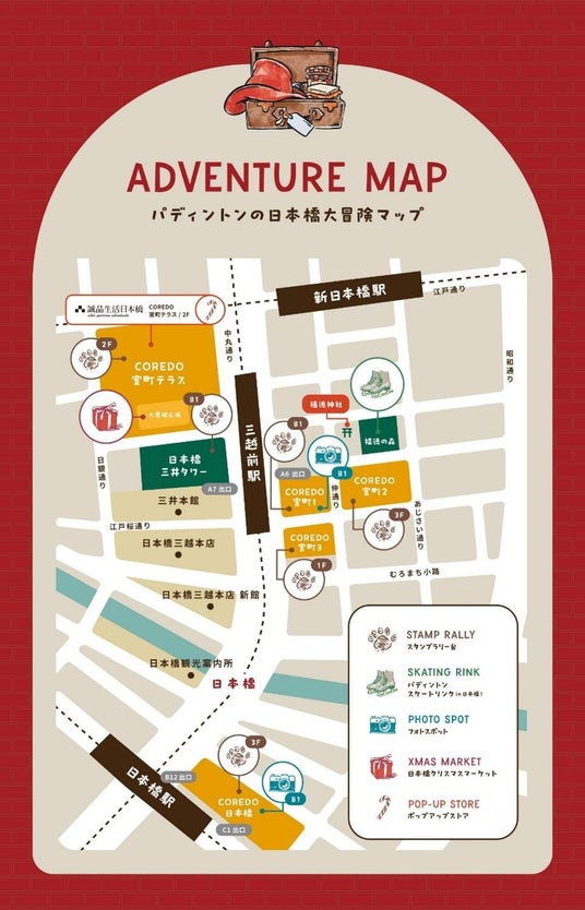 - 重ね押しスタンプラリー: COREDO室町・日本橋の6か所を巡り、スタンプを集めるとオリジナルのパディントン™ ポストカードが完成!先着順・在庫がなくなり次第終了です。