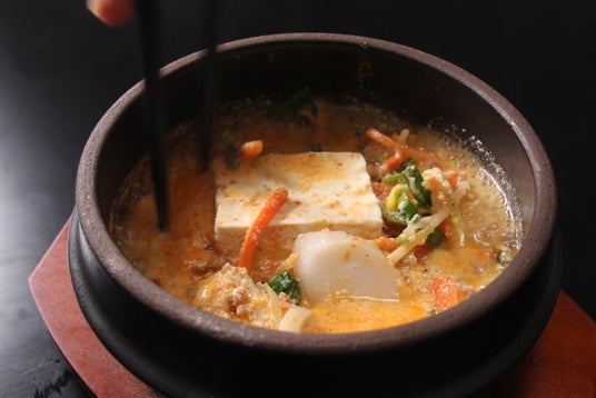 海老、イカ、あさりで取った魚介の旨味と唐辛子スープをベースにした辛味が人気の韓国鍋です。貝出汁を加えてあり濃厚な魚介の旨味と豆腐の食感を楽しむ事が出来ます。