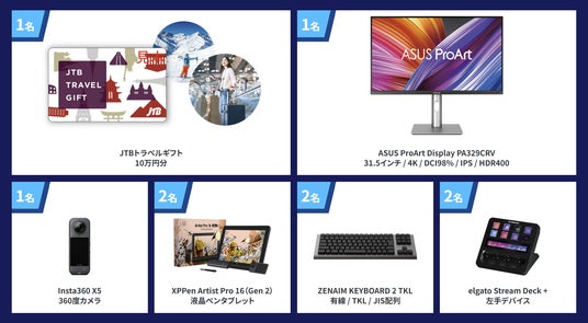 旅行からクリエイティブ・ゲーミングまで、幅広いニーズに応える豪華景品が抽選で当たります!