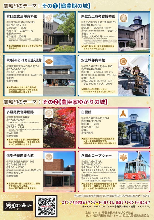 • プレゼント例: 安土城考古博物館特別展図録、八幡山ロープウェーペア乗車券、MIHO MUSEUMペア招待券、忍者グッズなど