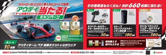 「アウディチーム ペア応援チケット&公式ウェア」をはじめ、カストロールオリジナルグッズを手に入れる大チャンスです!