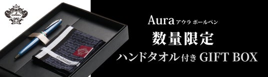 「Aura」の発売を記念し、特製ギフトボックスとハンドタオルがセットになった、数量限定のノベルティ付きギフトセットも用意されます。これからのギフトシーズンに、洗練されたデザインのボールペンは最適な贈り物となるでしょう。