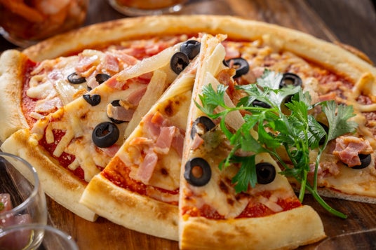 ベーコンと玉ねぎ ブラックオリーブのピザ