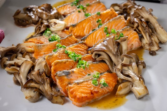 鮭の茸たっぷり山椒味噌ソース