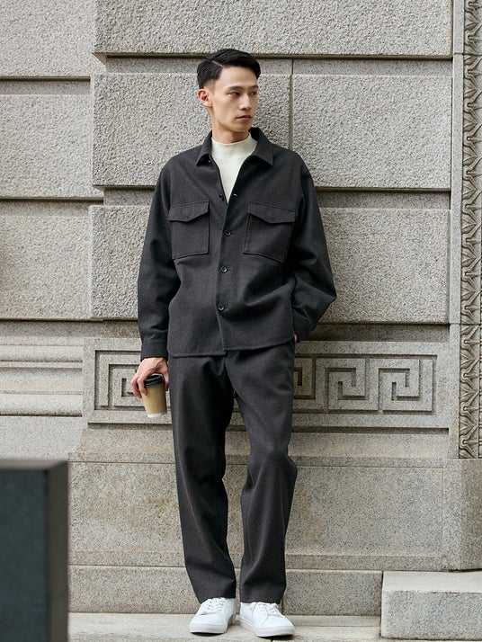 胸元の大きなポケットがアクセントになっている「プレシャスニットメルトンシャツブルゾン」。胸元と脇にある4つのポケットや、袖丈を調整できるアジャストボタンなど、ファッション性だけでなく実用性も兼ね備えています。