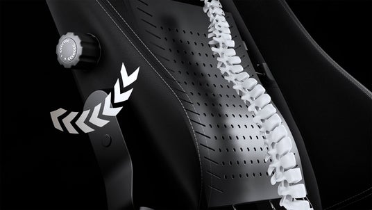 • 4方向ランバーサポート: 背もたれ内部に内蔵された4方向調整式ランバーサポートが、背骨のS字ラインに沿ってフィット。長時間の作業でも理想的な姿勢をキープし、腰への負担を効果的に軽減します。
