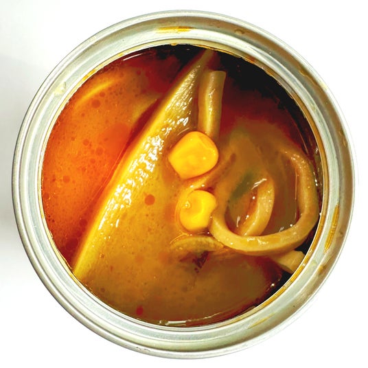 - 独自製法: スープに浸っていても伸びにくい独自の小麦麺を開発。従来のラーメン缶の主流であったこんにゃく麺とは異なり、いつでもどこでも本格的なラーメンの食感を楽しめます。
