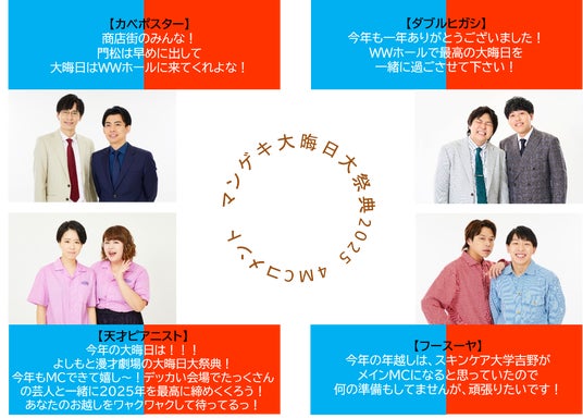 大阪の笑いを牽引する「よしもと漫才劇場」と「森ノ宮よしもと漫才劇場」が贈る、年末恒例のビッグイベント「マンゲキ大晦日大祭典」が、2025年はスケールアップして開催されます!