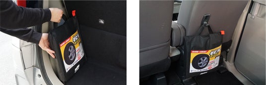 付属の収納バッグは幅約30cm×高さ約35cm×奥行き約9cmとコンパクトでスリムな設計。トランクに常時保管していても邪魔にならず、急な降雪への備えとして最適です。