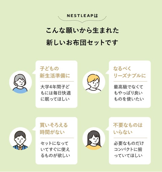 掛け布団なしで快眠を追求!EMOORから『NESTLEAP 寝具6点セット』が新登場!