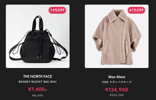 | 目玉商品(先行公開) | レディース:セリーヌ、マルジェラ、クロエなど メンズ:マルジェラ、モンクレール、ノースフェイスなど |