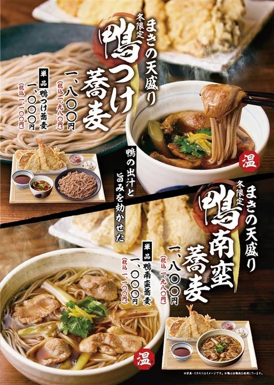 トリドールホールディングス傘下の「天ぷら定食まきの」は、冬の味覚として毎年大好評の合鴨肉を使用した期間限定メニューを、**2025年11月25日(火)**より全国の店舗で販売開始します!