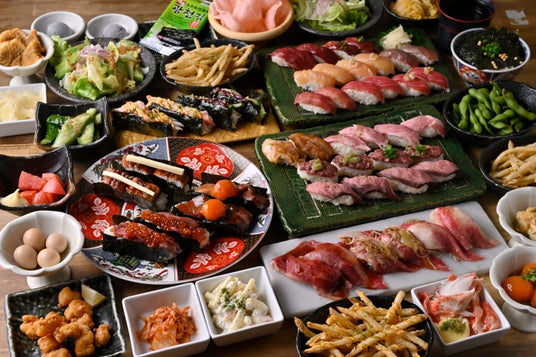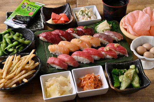 | 梅コース (日~木限定) | スタンダードな肉寿司7種とおつまみ11種が食べ放題のシンプルコース。 | 3,300円(税込)/90分 | 2,750円(税込)/90分 |