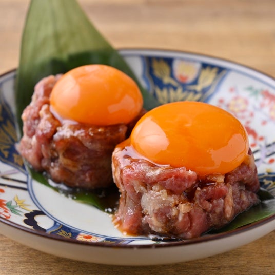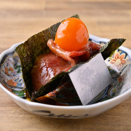 - 「ほぼ卵黄のおつまみ馬映ユッケ」 1,298円(税込):濃厚でツヤ感たっぷりの“ほぼ卵黄”が主役の、フォトジェニックなユッケ風おつまみ。