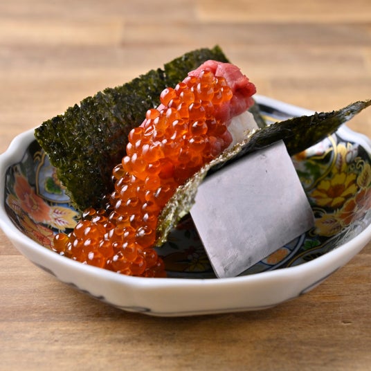 さらに肉寿司名物「べっこう玉」がまろやかさを添えます。
