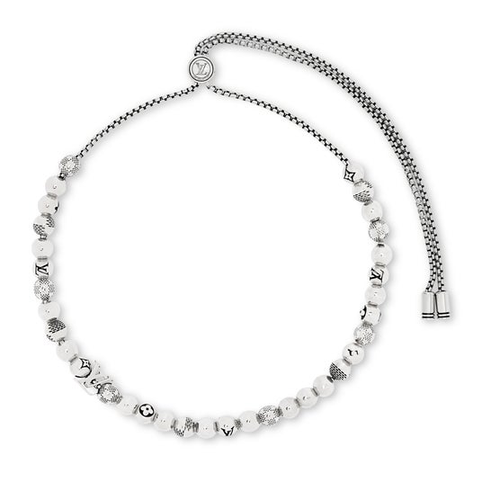 タイムレスな要素にモダンな華やぎを添えた印象的なデザインの調節可能な「ネックレス・ダミエ ステープル ボール」。光沢感のあるシルバーカラーで仕上げた丸みのあるメタルビーズのチェーンに、チェックのダミエ・モチーフとメゾンのシグネチャーを施しました。大胆で個性溢れる方にぴったりの表情豊かなアイテム。
