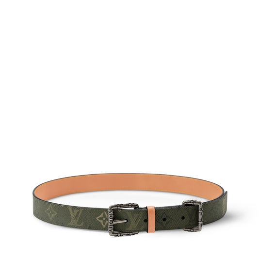 メゾンの伝統をフレッシュに再解釈した「ベルト・LV ドリフト モノグラム サープラス 35MM」。メンズクリエイティブ・ディレクター ファレル・ウィリアムスのダイナミックなインスピレーションを表現したデザインです。ミリタリー風の色合いから、グリーンのモノグラム・キャンバスをあしらった片面やキャメルカラーに仕上げたレザーの裏面、こだわり抜いた精緻なピンバックルにいたるまで、それぞれの要素が個性を放ちます。