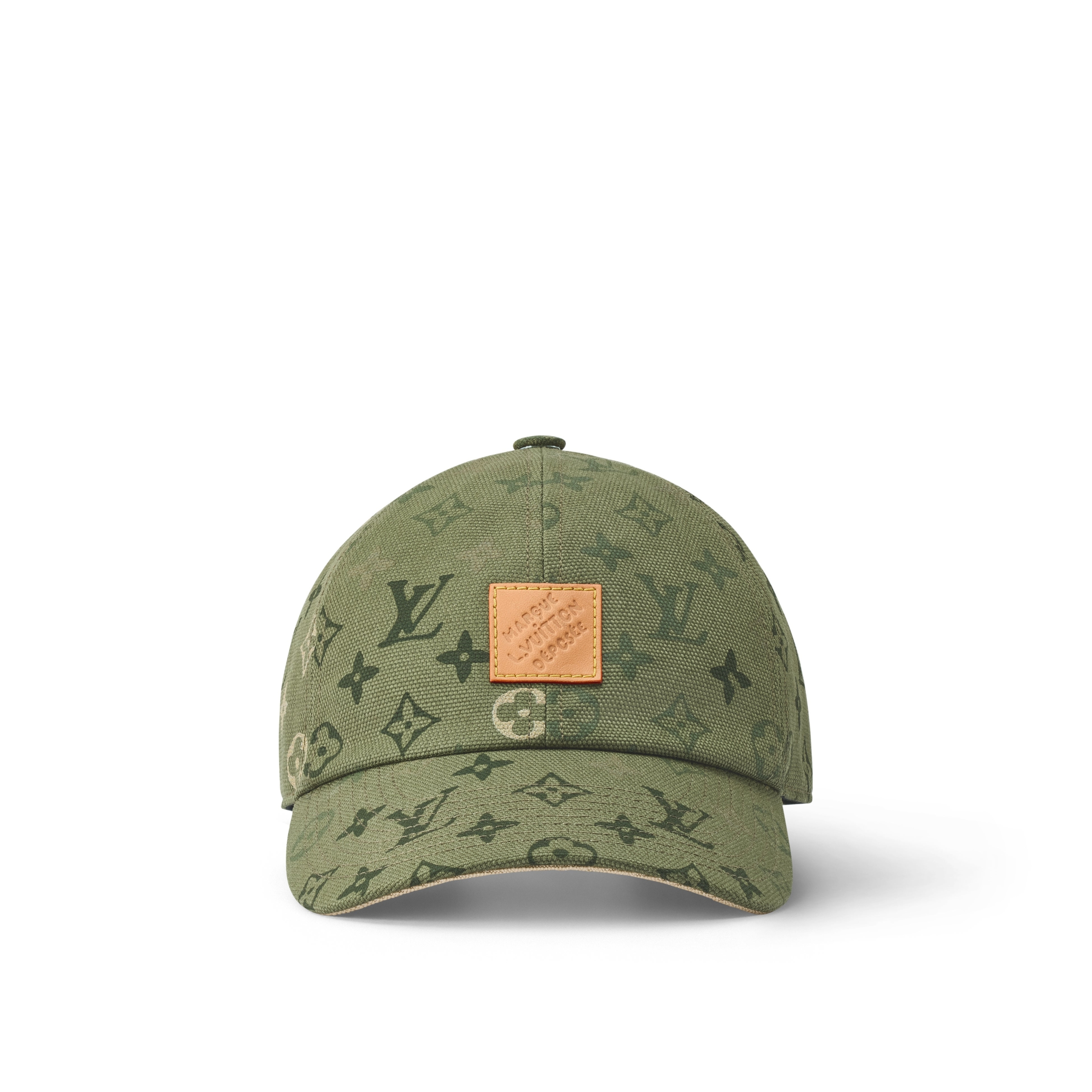 イタリア製の「キャップ・モノグラム サープラス」。ミリタリーウェアから着想を得たグリーンの色合いに「Marque L. Vuitton Deposee」シグネチャーのレザーパッチをステッチで施しました。デイリーに活躍するカジュアルなデザインに、メゾンを象徴する定番のエンブレムをあしらい、調節可能なスナップバックには「LV Vers」シグネチャーを添えたデザイン。