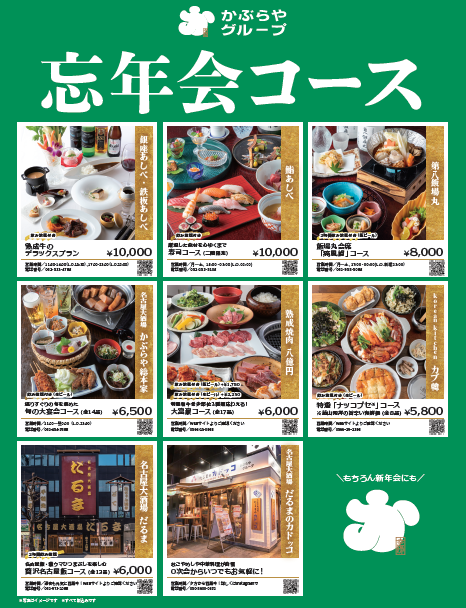 かぶらやグループ(愛知県名古屋市)は、名古屋市内6店舗と刈谷市内2店舗の計8店舗にて、年末の需要に応える多彩な**「忘年会コース」**を2025年11月より提供開始しました。