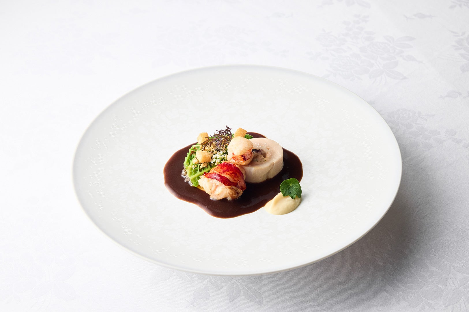 • 高級ロブスターとブランド地鶏を組み合わせた山海の贅沢な一皿。