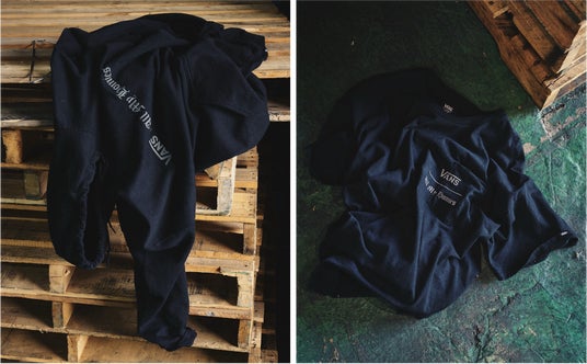 VansとAll My Homiesのコラボレーションロゴをリフレクター素材でプリントした、ブラックボディのフーディーとTシャツの2型も展開されます。