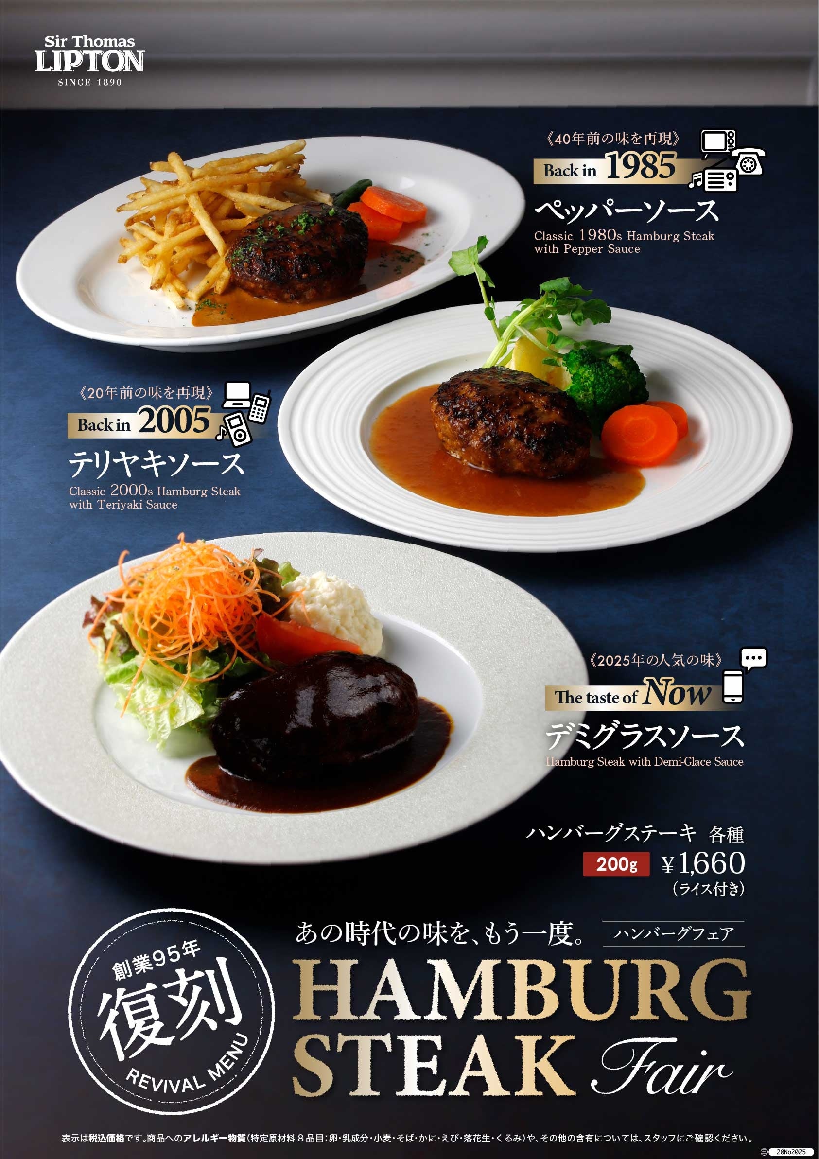 1930年創業、今年で95周年を迎える老舗紅茶専門店『Sir Thomas LIPTON ティーハウス』が、長年の愛顧に応える「復刻ハンバーグフェア」をパワーアップして展開します。