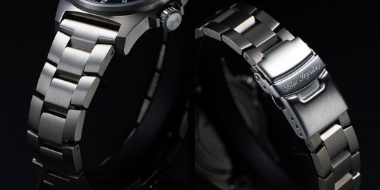 • 素材: ケースとブレスレットに、現行機T-4にも使用されるチタン素材を採用。ステンレス比で約40%軽量約2倍の強度を誇り、快適な装着感を実現します。