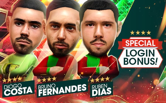 「ルベン・ディアス」「ブルーノ・フェルナンデス」「ヌーノ・タヴァレス」「ディオゴ・コスタ」「ジョアン・パリーニャ」といったポルトガルのスーパースターが、得意戦術カウンターの新★5選手として登場する“SUPER STAR FES”を開催! あわせて★4バージョンの選手たちがもらえる“スペシャルログインボーナス”も実施します。