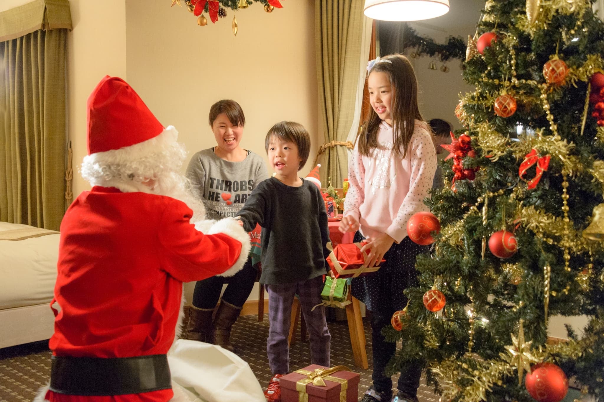 事前にお預かりしたプレゼントをサンタクロースがお部屋までお届け!