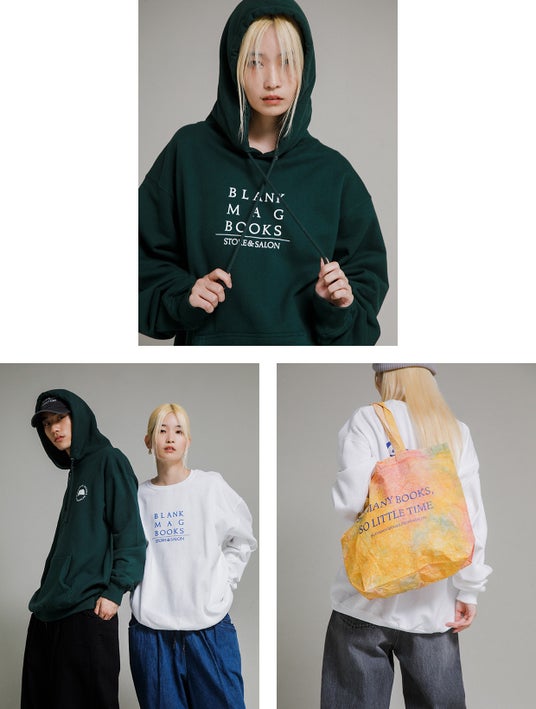 独自な視点でセレクトした情報を発信し、実態も謎のままアート、ファッションシーンを中心にカルト的な人気を誇り、ストリートカルチャーに深く精通した人々がその動向を常に気にするカルチャーレーベル。今回のブースでは、BLANKMAGBOOKS STORE & SALON BLANKMAGが運営するアポイントメント制サロン「BLANKMAGBOOKS STORE & SALON」を展開し、レアなものからコレクターズアイテムまで、多岐にわたる世界中から集めたZINEや写真集を設置します。注目すべきは、「本」にまつわるメッセージをウェアに落とし込んだコレクションや、人気のキャップ。そして完売となっているTie Dyeのトートバッグなども販売します。