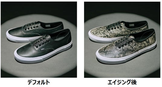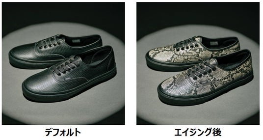 一見、通常のブラックスネークアッパーのAUTHENTICに見えるが、経年変化によってスネークスキンの柄が出てくる仕様に。