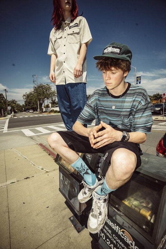 今回のコレクションでは、特集アーティストとしてカリフォルニア州サンタクルーズ出身の2人組バンド「RAUE(ラウエ)」をフィーチャー。RAUEは、90年代のグランジやパンクにインスパイアされたサウンドで注目を集めています。メロディックな部分をすべて作曲し演奏し、ギター&ボーカルを担当するペイジ・カレニアン(Paige Kalenian)と、ドラム&ベースを担当するジャックス・ハックル(Jax Huckle)が生み出す音楽は、わずか2人ながら5人編成バンドに匹敵するサウンドを生み出しています。