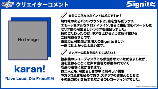 karan!、渡邉峻冶「Signite『Live Loud, Die Free』」担当