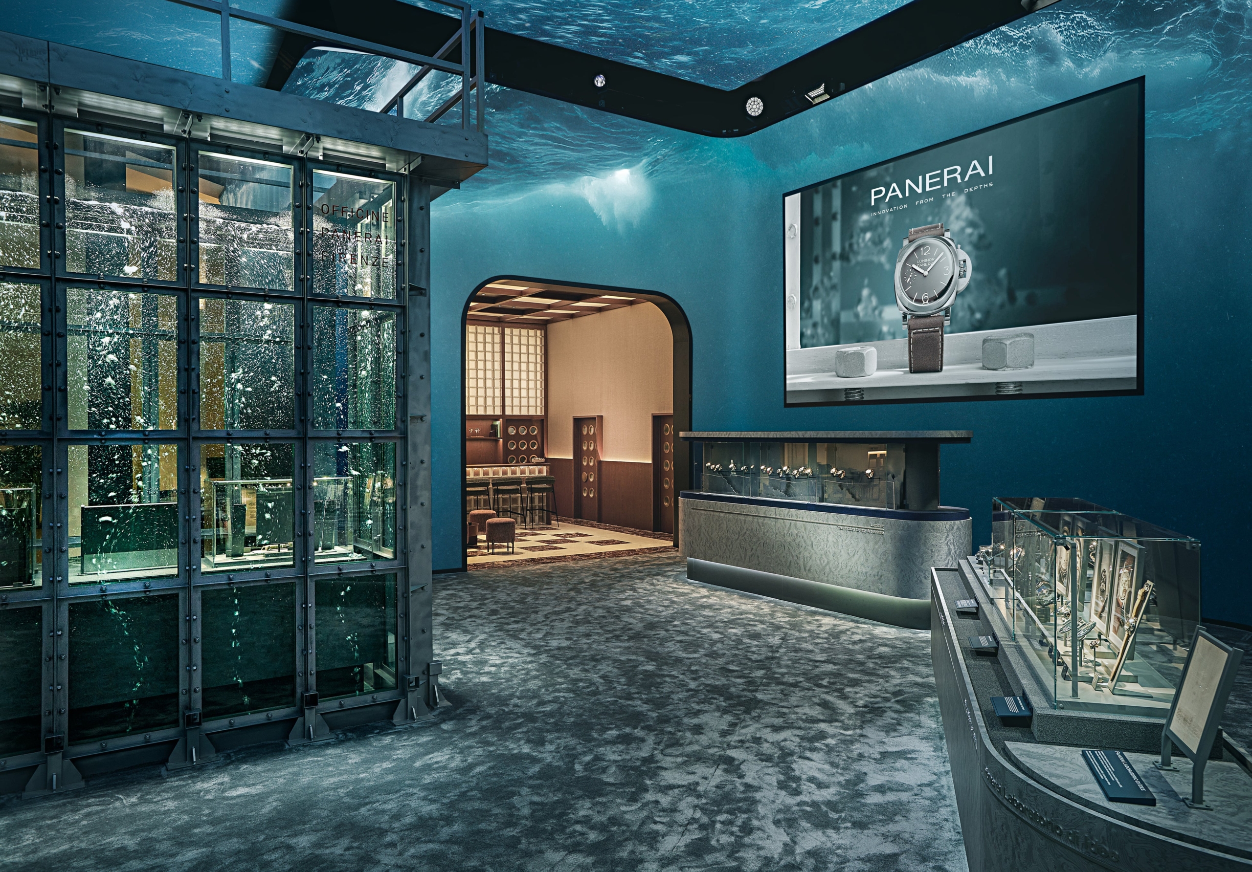 1935年にイタリア海軍からの要請で、初めてのプロフェッショナルダイバーズウォッチを完成させたパネライ。今年のWatches and Wondersでは、1966年にパネライによって設計され、COMSUBIN基地(Comando Raggruppamento Subacquei e Incursori)があるレ・グラツィエ(ラ・スペツィア、イタリア)に設置され、現在も使用されている訓練用タンクを、展示会場に再現しました。この設備は、イタリア海軍の特殊潜水部隊が水中での技術や装備の扱いを観察・改良するための制御された環境として機能します。透明なメタクリレートパネルを通して、教官が外から潜水隊員の動きを観察できるように設計されており、訓練をより安全で計測可能なものにしています。隣接するパネルをボルトで固定した軽合金フレームを使用しており、防水性を保つように作られています。また、外部階段でアクセスできる上部プラットフォームと内部アクセス用のはしごも備えています。単なる遺物とは異なり、これはブランドが海との持続的な関係を示す生きた証であり、その要素はブランドのアイデンティティを最初から形作ってきました。