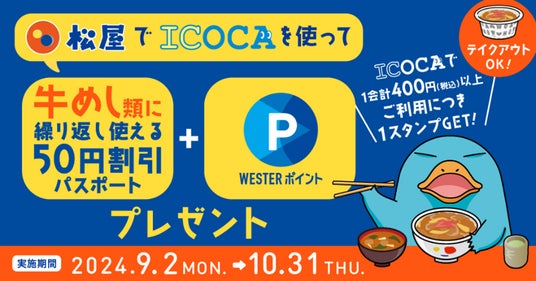 2社は、松屋対象店舗にてICOCAでお支払いいただいたWESTER会員の皆様に、下記の条件クリアで