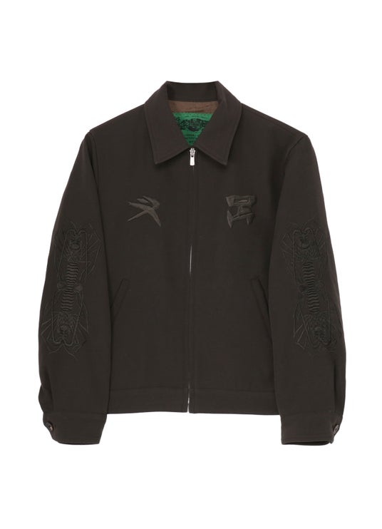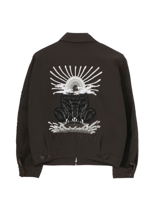 ジャンパーは、作品に登場する毛むくじゃらの妖怪をメインモチーフに、グラッフィックデザイナー荒居誠がデザインを担当。「横振り刺繍」という横振りミシンを使用しながら職人の手作業によって1つ1つ生み出される、特別な日本独自の技法によって表現されています。