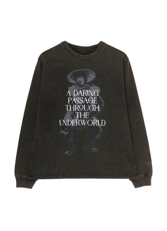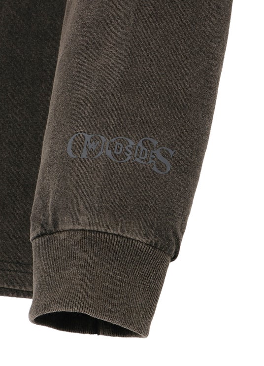 また、ロングスリーブTシャツには、作品に登場する叉鬼役の森田剛氏のグラフィックを用いており、ワンウォッシュ加工や2種類のプリント手法を施すことで、奥行きのあるビンテージライクな仕上がりとなっています。袖口には、WILDSIDEとMOSS STUDIOのコラボレーションロゴがプリントされています。