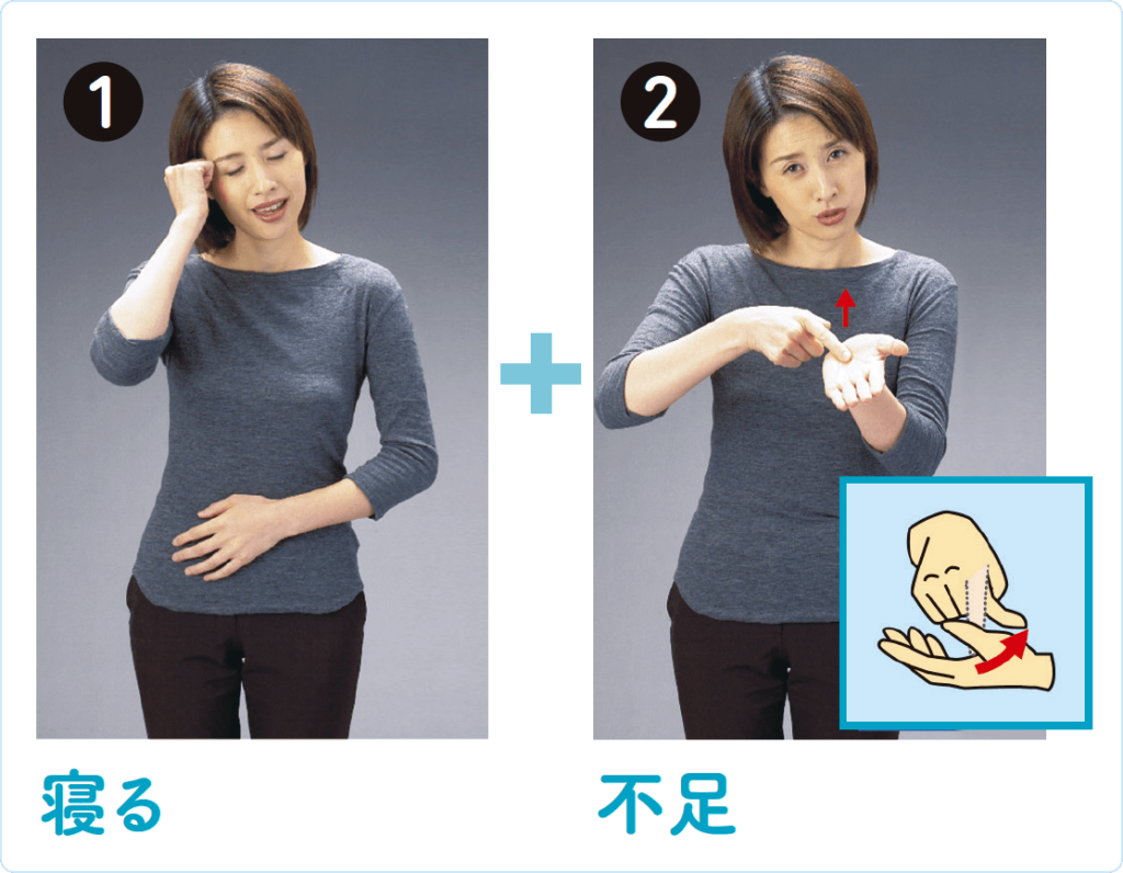 不足は左手のひらを上に向け、右手の人差し指で左手のひらをかくようにする。