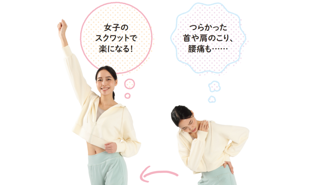 スクワットで肩こり・腰痛が改善!スマホ首や巻き肩を解消する『正しい姿勢』の作り方【女子のスクワット】