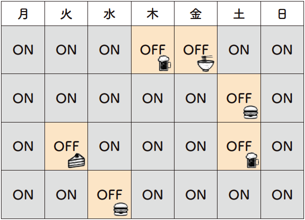 あらかじめ飲み会などの予定がある日は、先に OFF の日にしておく