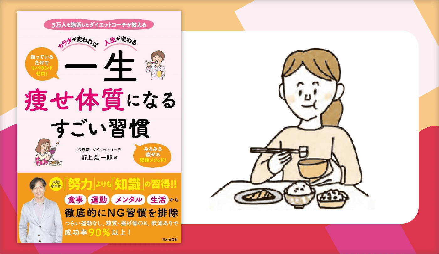 【出典】『カラダが変われば人生が変わる 一生痩せ体質になるすごい習慣』著:治療家・ダイエットコーチ 野上 浩一郎