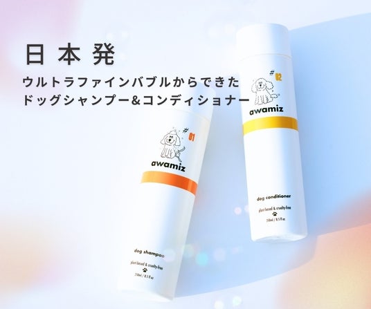 awamizは、ウルトラファインバブル技術を使用した犬用シャンプーです。