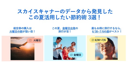 ・札幌(北海道): 秋の始まりとともに旬の味覚と自然を楽しめる <必見! おすすめ旅行節約術> さらに、スカイスキャナー上の検索ボリュームデータをもとにした、この夏活用したいお得・節約術についてもご紹介いたしました。 ・航空券の購入は 火曜日 の朝がお得! ・この夏、金曜日出発 の旅行が吉! ・最もお得に旅行するなら、6/30~7/6の週 が狙い目! 発表会では、なぜこうした傾向になるのかの考察も交えてご紹介。