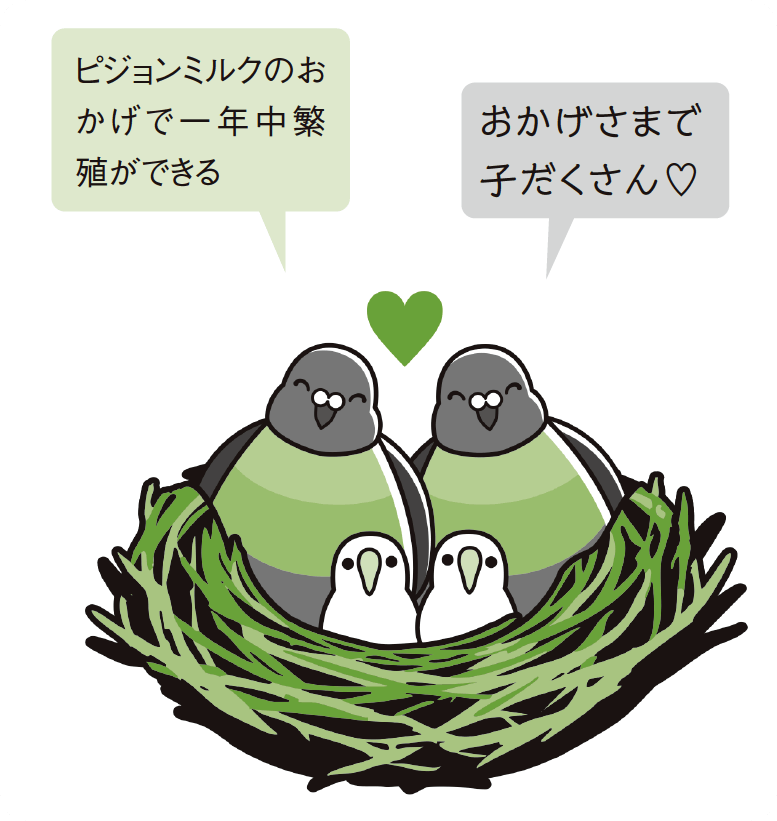 鳥のミルクは食道の一部である消化器官「そのう」から分泌されるため「そのう乳」とも呼ばれている。