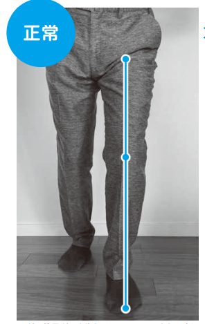 ひざの位置がつま先とそろっている、または少し外側にある場合は、外反母趾になっていない可能性が高い。