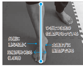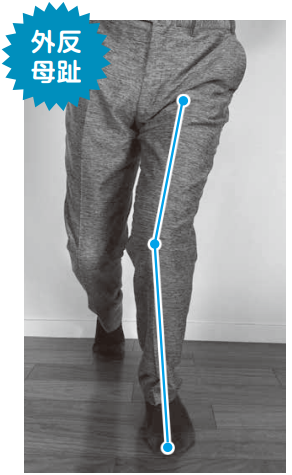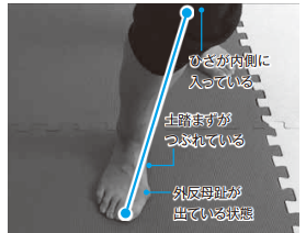 ひざの位置がつま先より内側にある場合は、外反母趾になっている可能性が高い。