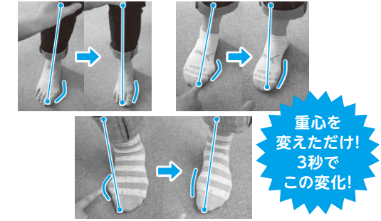 外反母趾は骨が曲がってしまっているわけではないので、重心をかける位置を変えるだけで改善できるのです。その場で変化を実感できるのでぜひやってみてください。