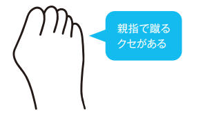 どちら側で蹴るかは足首やひざの向き、股関節の使い方などによって変わってきますが、治し方はどちらも同じ。足の指で地面を強く蹴らないように心がけるなど、歩き方の悪いクセを正すことが、唯一の治療法になります。